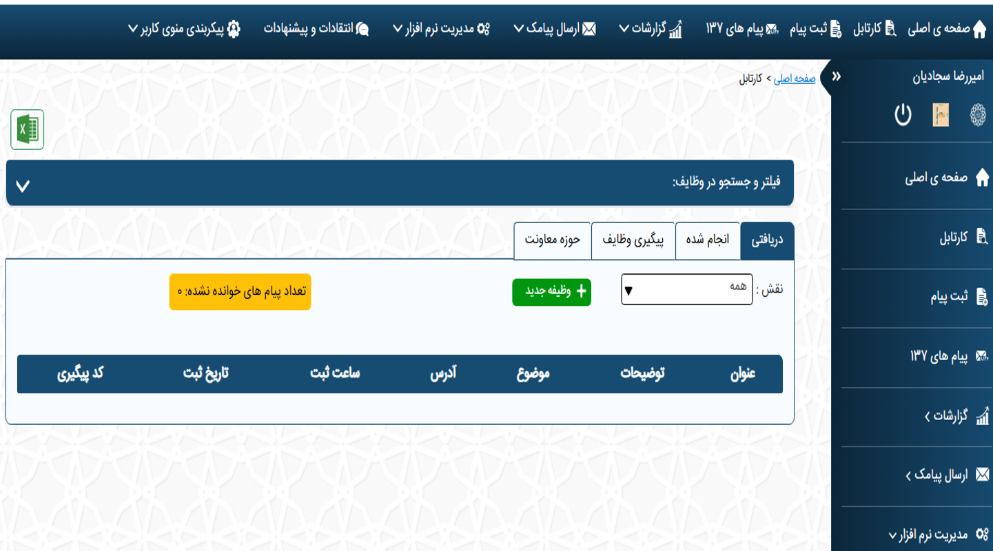 في نظام iAPP بلس تم إنشاء خيار يسمح لك بإنشاء مهمة جديدة لمستخدم أو دور خارج سير العمل التلقائي المحدد في النظام. للوصول إلى هذا الخيار، أدخل القسم القابل للحفظ وانقر على خيار المهمة الجديدة.